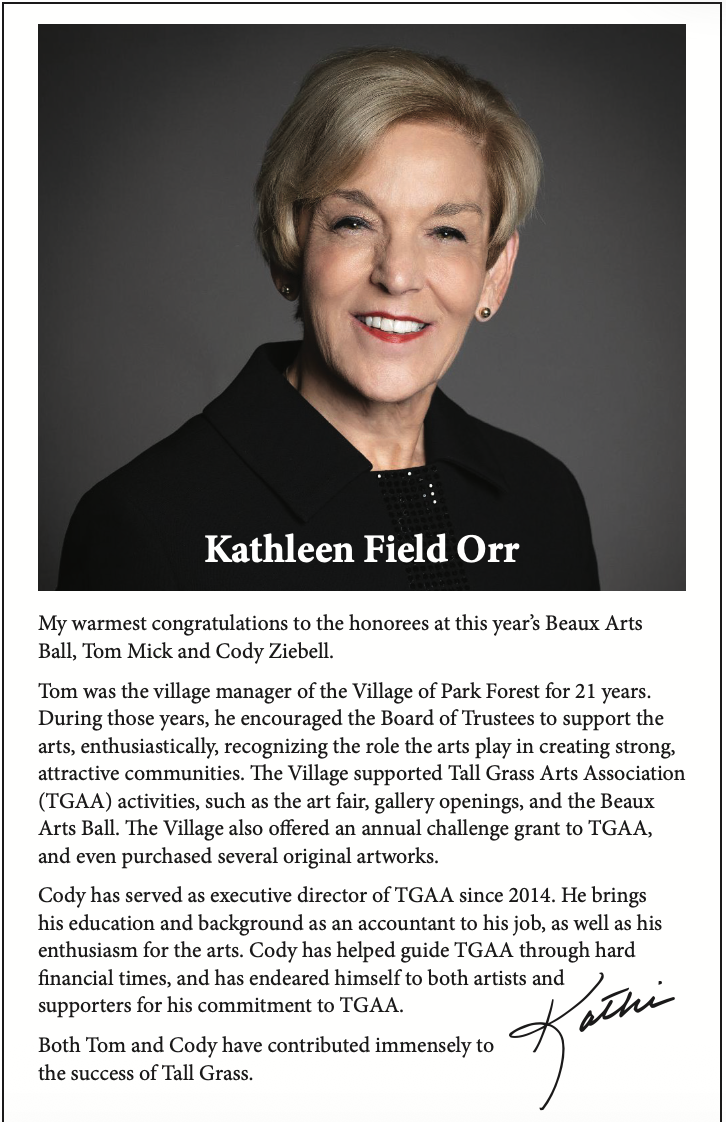 As Tall Grass Arts Association’s largest fundraiser of the year, the Beaux Arts Ball plays a vital role in sustaining and advancing our mission. Because of your support, we are able to continue providing meaningful opportunities for creativity, education, and artistic expression throughout our community.
